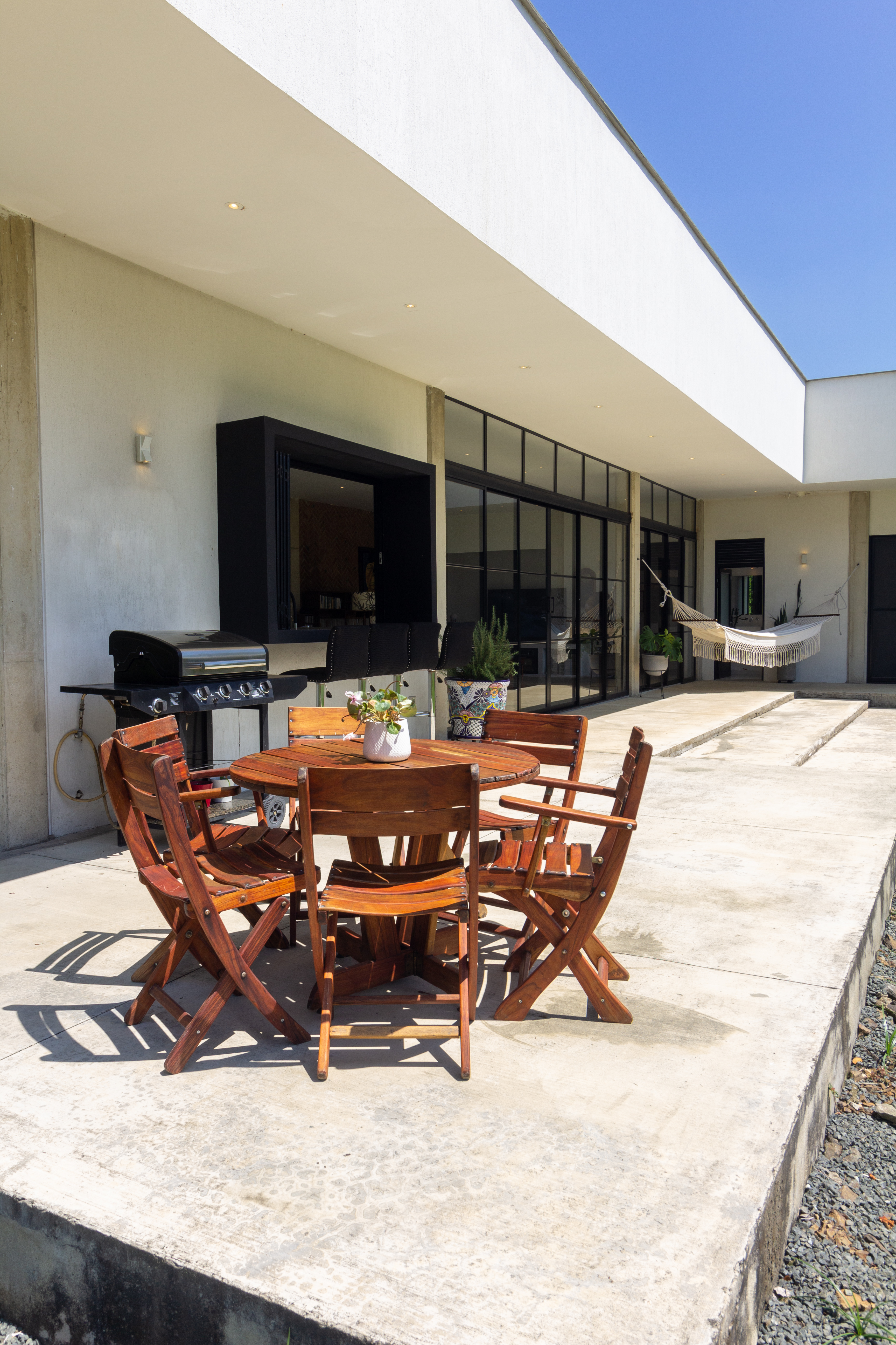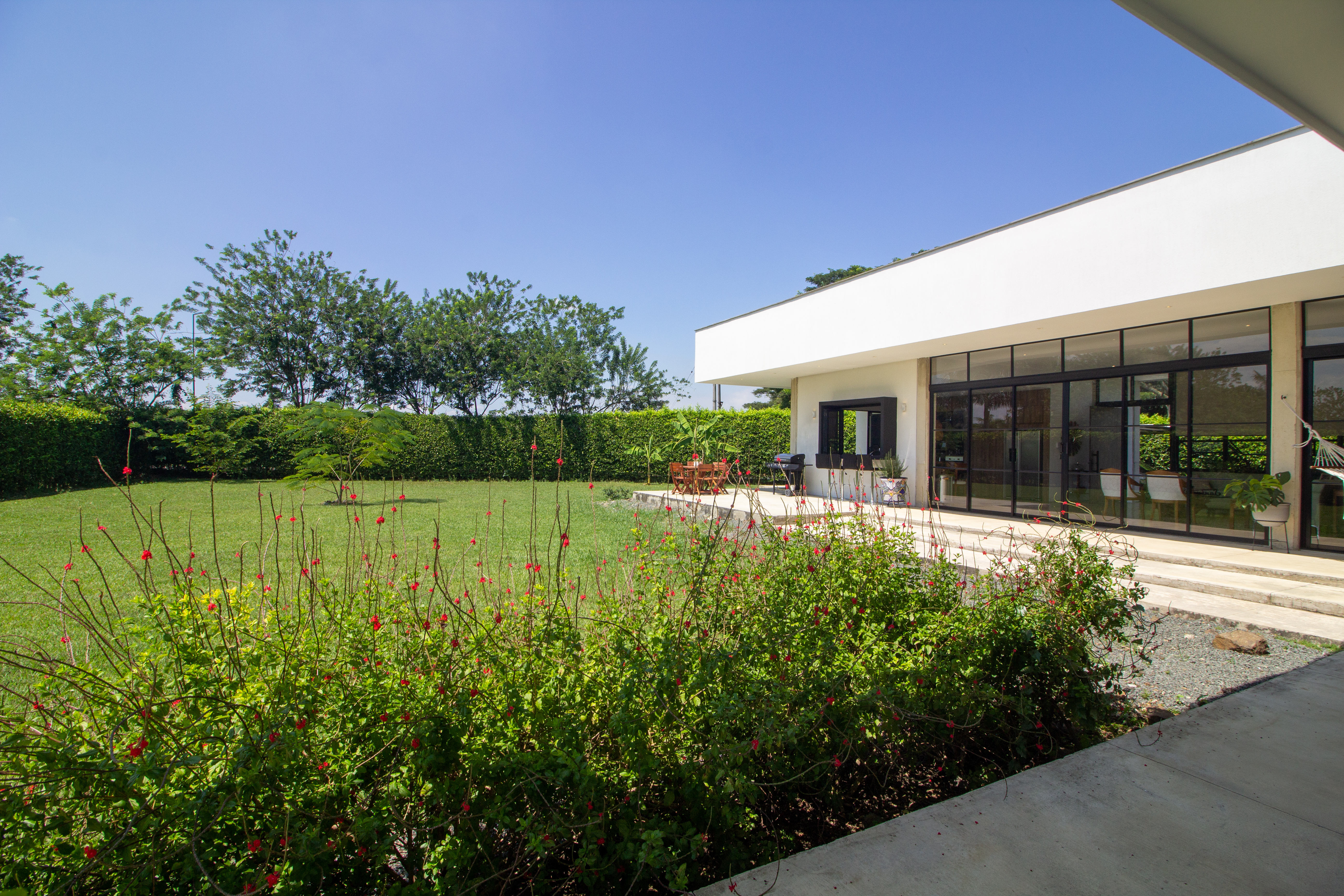 Construida sobre un lote de 1.600 m², con 317 m² en un solo nivel, sus líneas limpias y su arquitectura contemporánea crean un ambiente donde el diseño y la naturaleza conviven sin esfuerzo.